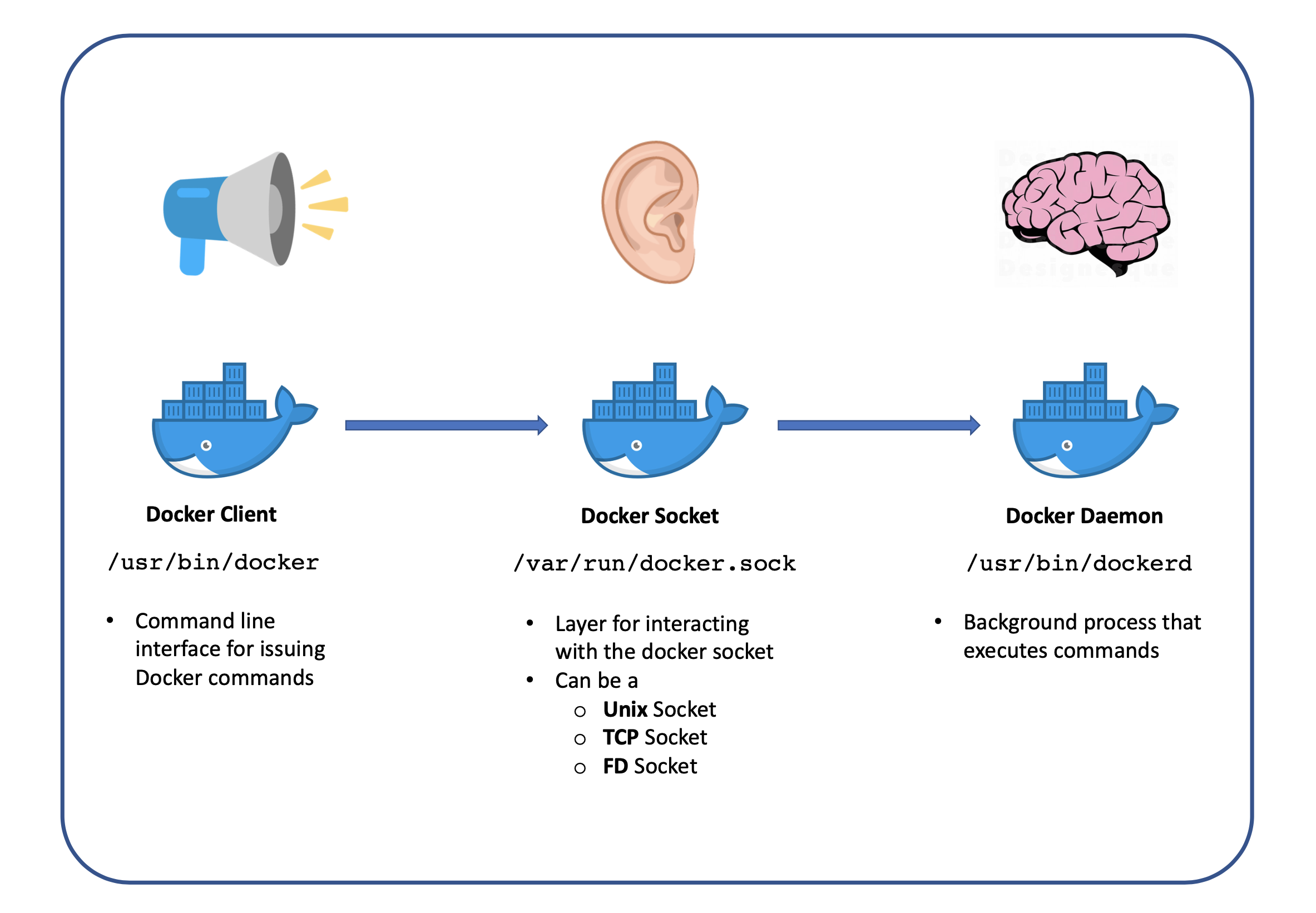 ๋์ปค ์์ผ์ ๋์ปค ํด๋ผ์ด์ธ๋์ ๋์ปค ์๋ฒ(๋ฐ๋ชฌ) ์ฌ์ด์์ ๋ช ๋ น์ด๋ฅผ ์ ๋ฌํ๋ ์ญํ ์ ํ๋ค.
