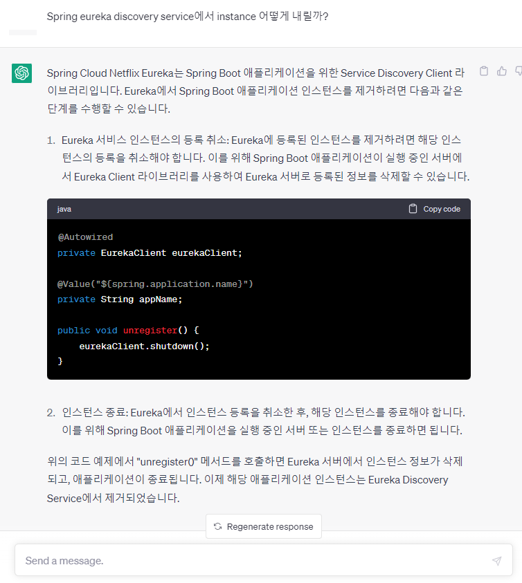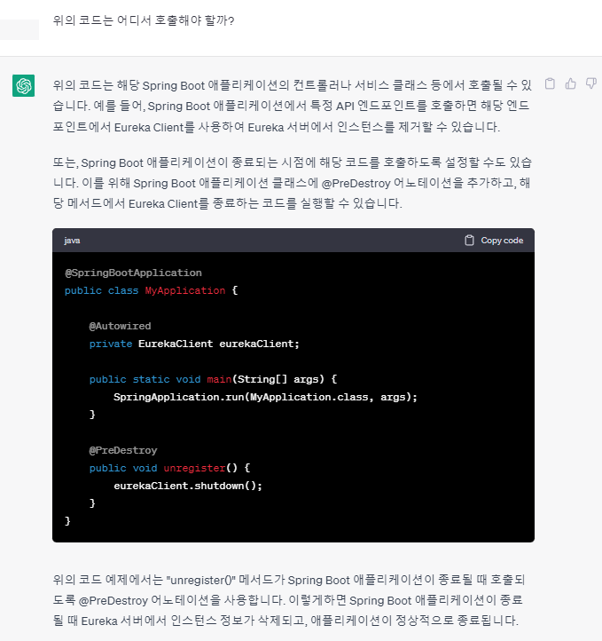 1. ๋ด๋ฆฌ๊ณ ์ถ์ ์ธ์คํด์ค์ ๋ง์ดํฌ๋ก์๋น์ค์ `SpringApplication.java` ๋ฐ์ `EurekaClient`๋ฅผ `shutdown`์ํค๋ ์ฝ๋๋ฅผ ์ถ๊ฐํด์ค๋ค.