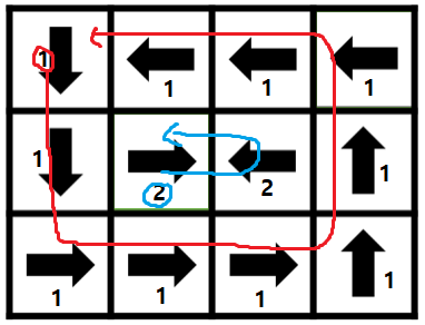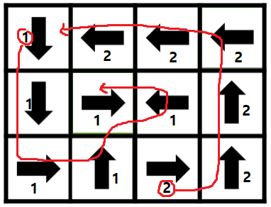 ์ค์ ํ ๋ฐฉํฅ์ ๋ฐ๋ผ ๊ณ์ ์ด๋ํ๋ฏ๋ก ๊ทธ๋ํ ํ์์ DFS๋ก ํ๋ค. ํ ์ ์ ๊ธฐ์ค์ผ๋ก DFS ํ์์ ํ์ฌ ํ ์ฌ์ดํด์ ๊ตฌํ๋ค.