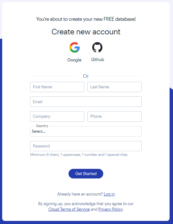 Vendor์ Region์ ์ ํํ๊ณ Let's start free๋ฅผ ๋๋ฅด๋ฉด ๋๋ค.