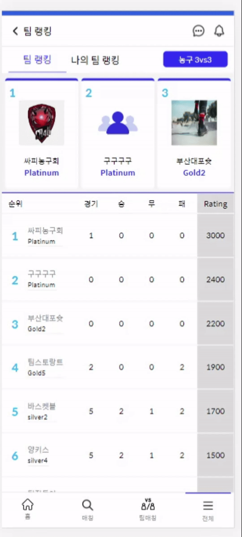 ์ด๋ ๋ชจ์ ํ๋ก์ ํธ์์ ํ ๋ญํน์ ๋งก์์ ๊ตฌํํ๋ค. ํ ๋ญํน ๊ธฐ๋ฅ์ ์คํฌ์ธ ์ข ๋ฅ๋ง๋ค ๊ฒฝ๊ธฐ, ์น, ๋ฌด, ํจ, ๋ ์ดํ ์๋ก ์ ๋ ฌ๋ ์์ 10๊ฐ์ ํ์ ์ ๋ณด๋ฅผ ์ ๊ณตํ๋ ๊ธฐ๋ฅ์ด๋ค.