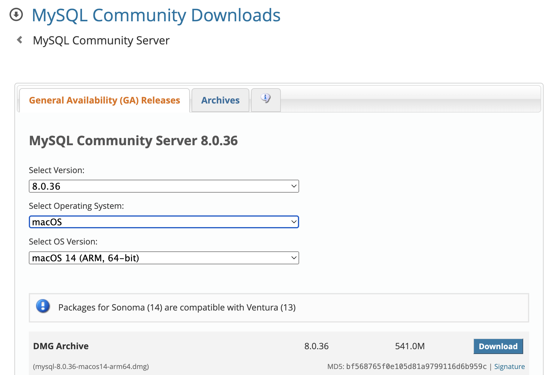 ์๋ก MySQL์ ๋ค์ด๋ฐ๋๋ค.