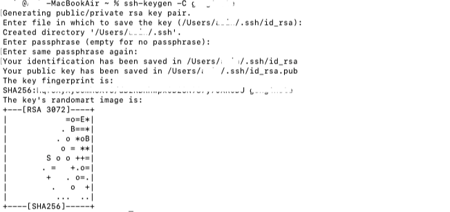 ๊ฐ์ธํค์ ๊ณต๊ฐํค๋ ๋ด ์ปดํจํฐ์์ `ssh-keygen -C [์ด๋ฆ]` ์ผ๋ก ์์ฑํ ์ ์์๋ค.