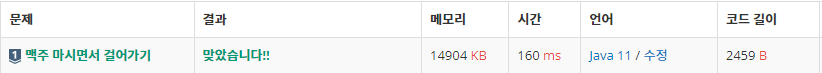 9205๋ฒ: ๋งฅ์ฃผ ๋ง์๋ฉด์ ๊ฑธ์ด๊ฐ๊ธฐ